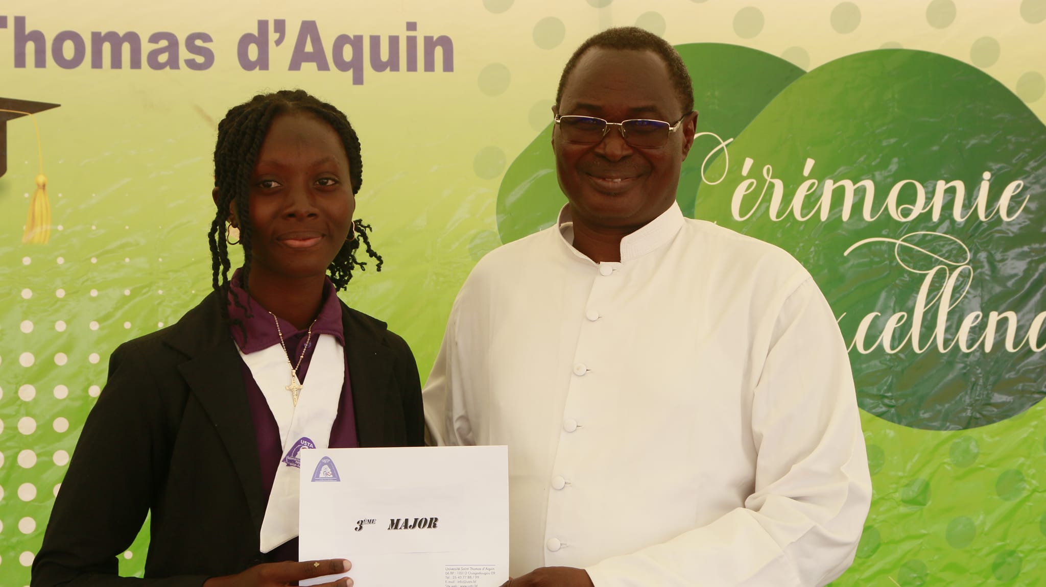 𝐸𝑛 𝑜𝑢𝑣𝑒𝑟𝑡𝑢𝑟𝑒 𝑑𝑒 𝑠𝑜𝑛 𝑎𝑙𝑙𝑜𝑐𝑢𝑡𝑖𝑜𝑛, 𝑀𝑜𝑛𝑠𝑖𝑒𝑢𝑟 𝑙’𝐴𝑏𝑏𝑒́ 𝐻𝑦𝑎𝑐𝑖𝑛𝑡ℎ𝑒 𝑂𝑈𝐸́𝐷𝑅𝐴𝑂𝐺𝑂 𝑎 𝑡𝑟𝑎𝑛𝑠𝑚𝑖𝑠 𝑙𝑒𝑠 𝑣œ𝑢𝑥 𝑑𝑒 𝑗𝑜𝑦𝑒𝑢𝑠𝑒 𝑓𝑒̂𝑡𝑒 𝑝𝑎𝑡𝑟𝑜𝑛𝑎𝑙𝑒 𝑎̀ 𝑙𝑎 𝑐𝑜𝑚𝑚𝑢𝑛𝑎𝑢𝑡𝑒́ 𝑒́𝑑𝑢𝑐𝑎𝑡𝑖𝑣𝑒 𝑑𝑒 𝑙’𝑈𝑛𝑖𝑣𝑒𝑟𝑠𝑖𝑡𝑒́ 𝑆𝑎𝑖𝑛𝑡 𝑇ℎ𝑜𝑚𝑎𝑠 𝑑’𝐴𝑞𝑢𝑖𝑛 (𝑈𝑆𝑇𝐴) 𝑎𝑢 𝑛𝑜𝑚 𝑑𝑒 𝑀𝑜𝑛𝑠𝑒𝑖𝑔𝑛𝑒𝑢𝑟 𝐺𝑎𝑏𝑟𝑖𝑒𝑙 𝑆𝐴𝑌𝐴𝑂𝐺𝑂, 𝐴𝑟𝑐ℎ𝑒𝑣𝑒̂𝑞𝑢𝑒 𝑑𝑒 𝐾𝑜𝑢𝑝𝑒́𝑙𝑎 𝑒𝑡 𝑃𝑟𝑒́𝑠𝑖𝑑𝑒𝑛𝑡 𝑑𝑢 𝐶𝑜𝑛𝑠𝑒𝑖𝑙 𝑑’𝑎𝑑𝑚𝑖𝑛𝑖𝑠𝑡𝑟𝑎𝑡𝑖𝑜𝑛 𝑑𝑒 𝑙’𝑈𝑆𝑇𝐴.